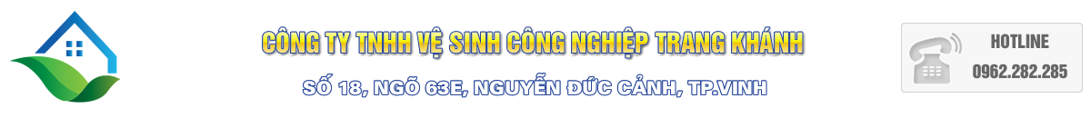 CÔNG TY TNHH VỆ SINH CÔNG NGHIỆP TRANG KHÁNH Địa chỉ: Số nhà 18, Ngõ 63E, đường Nguyễn Đức Cảnh, Thành phố Vinh Điện thoại: 0962.282.285 (Trần Văn Toàn) Email: [email protected] - Mã số thuế: 2901946660 Website: http://vesinhnghean.com